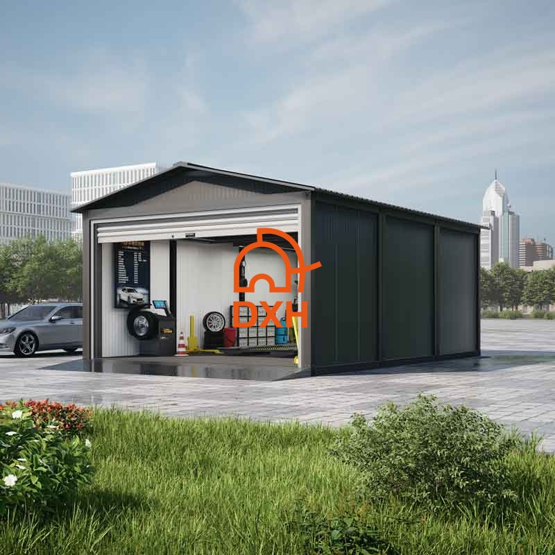 DXH House's flat pack storage garage stands out for its flexibility and affordability. Whether you're looking for a modular garage for storage tools, a portable vehicle shelter, or a customizable outdoor storage structure, this container garage can suit your needs. Due to its construction with a steel structure and insulated sandwich panels, it offers both weather resistance and structural stability.